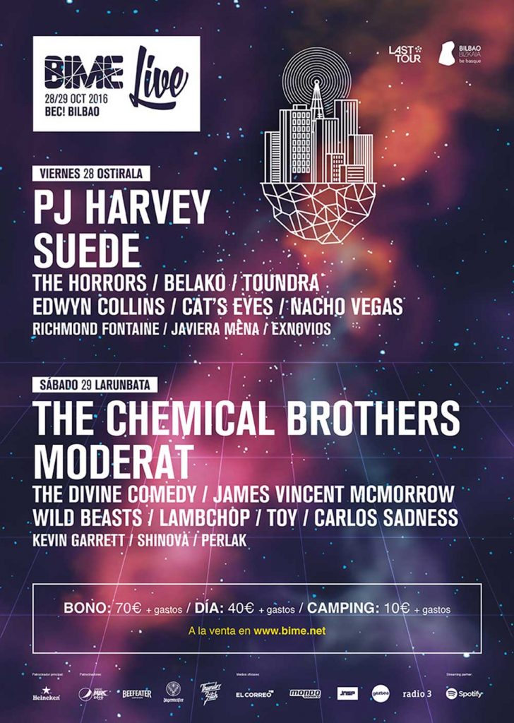 Viernes, 28 de octubre PJ Harvey Suede The Horrors Belako Toundra Edwyn Collins Cat's Eyes Nacho Vegas Richmond Fontaine Javiera Mena Exnovios